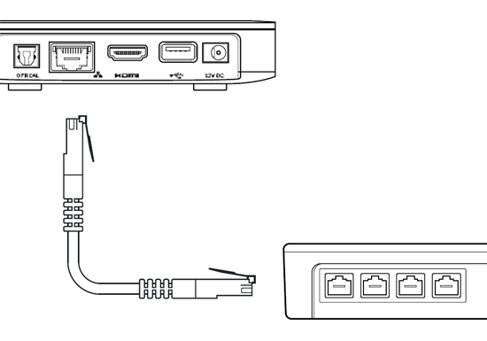 2. Anslut nätverkskabeln från Mediaboxen till din router.